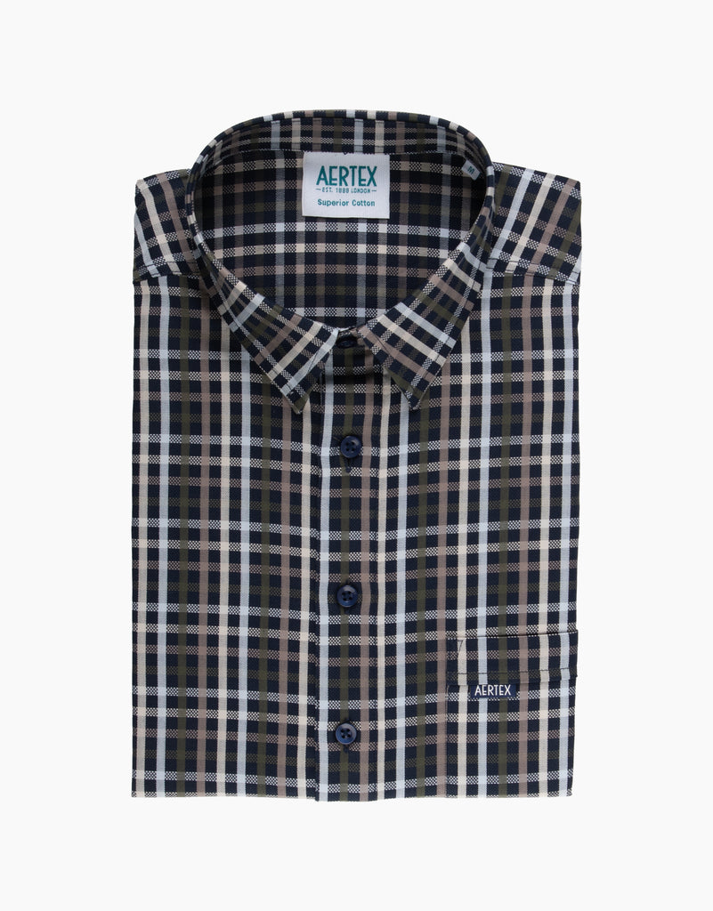 Aertex Taunton Navy Check Short Sleeve Polo Shirt