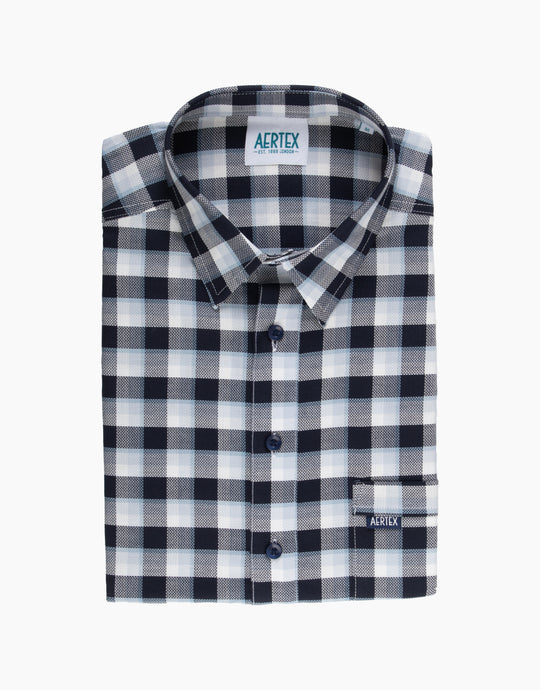 Aertex Taunton Navy Shadow Check Short Sleeve Polo Shirt