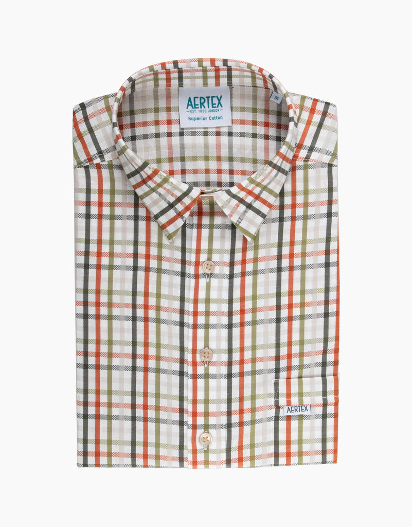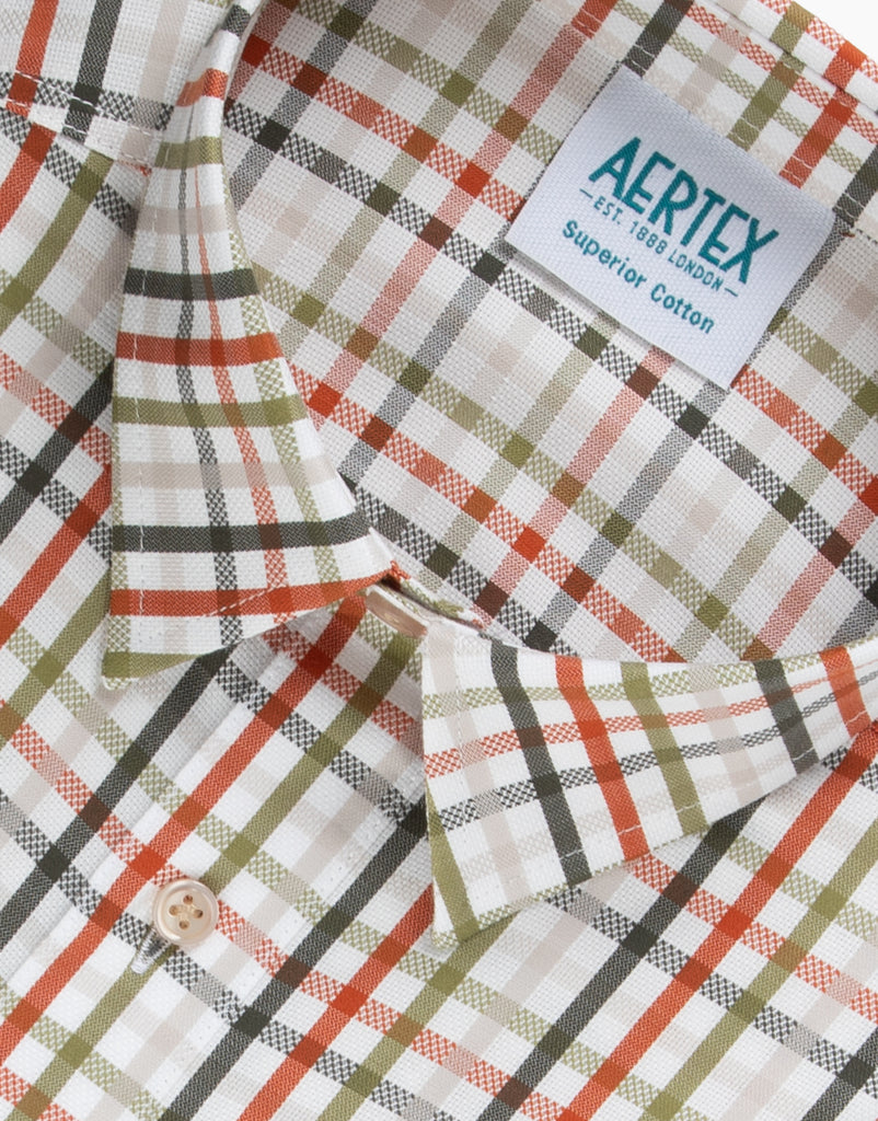 Aertex Taunton Olive Check Short Sleeve Polo Shirt