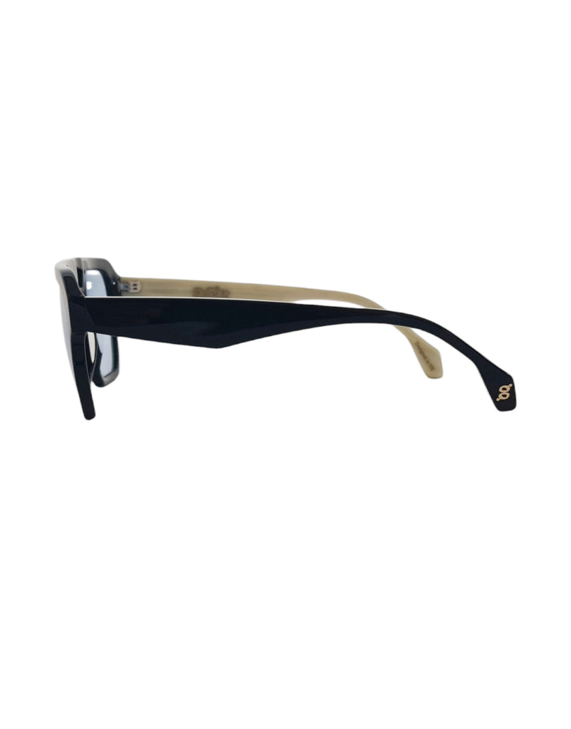 A timeless black frame that exudes sophistication and versatility, perfect for any occasion. Comes with blue lenses.
