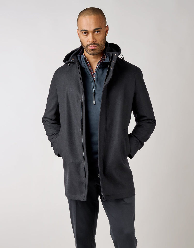 Hooded parka coat with detachable hood and back waist-cinching drawstring. Designed for comfort and protection, this parka coat is perfect for weathering the elements with ease. The detachable hood, drawstring waist, and cozy lining make it a wardrobe essential.