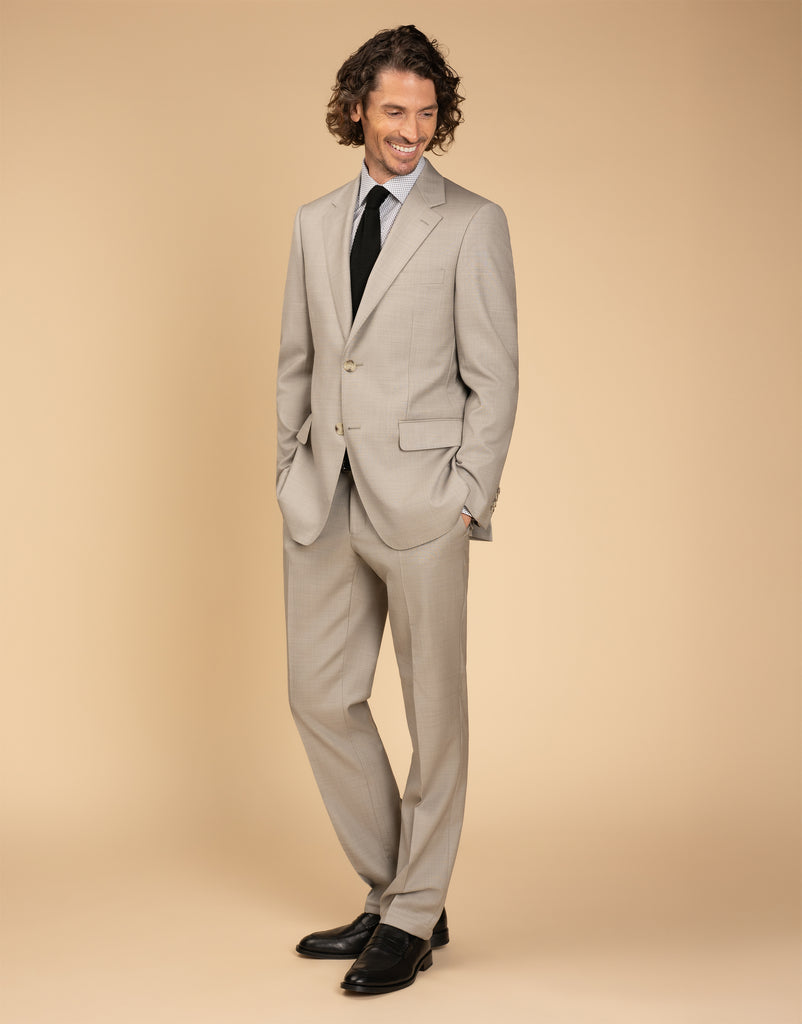 Our most popular fit. A contemporary cut that is slightly wider across the Jacket chest and abdomen and wider in the Trouser leg than the Narrow fit. It creates a flattering silhouette on men of all shapes and sizes.