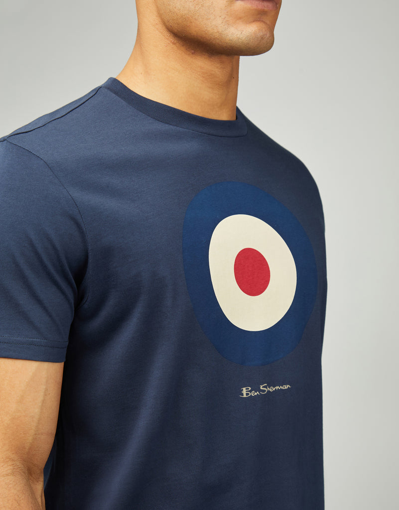 The Ben Sherman Target Dark Navy T-Shirt features a regular fit and is made from 100% organic cotton jersey. It showcases our iconic target graphic on the chest, printed using environmentally friendly water-based inks.