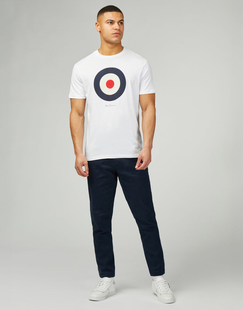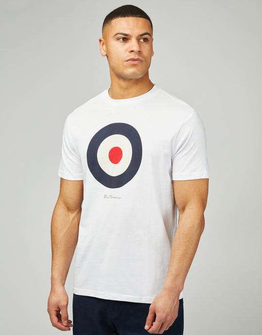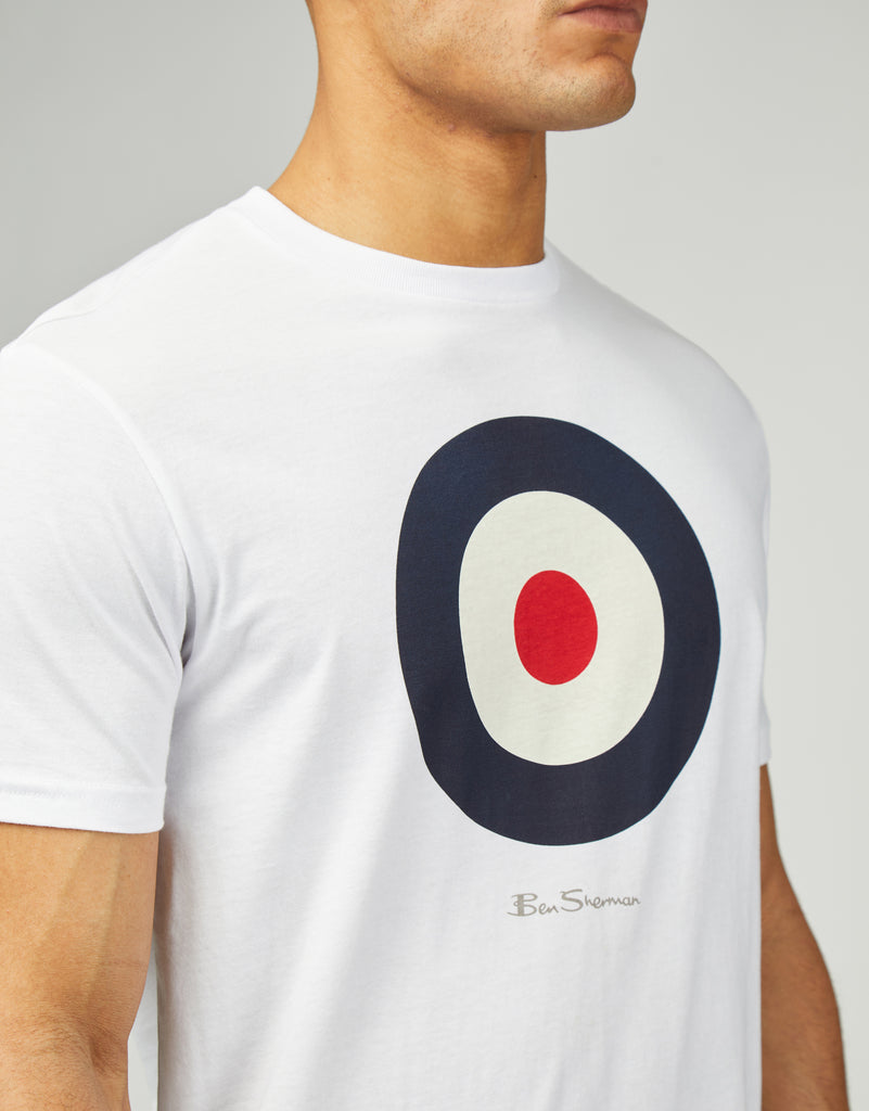 The Ben Sherman Target White T-Shirt is made from 100% organic cotton jersey and offers a regular fit. It proudly displays our signature target graphic, created with a water-based print on the chest.