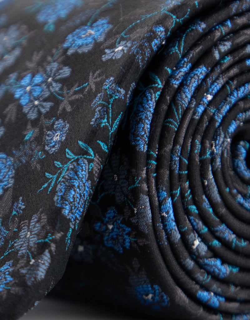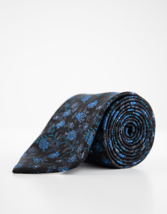 Black & Blue Floral Silk Tie