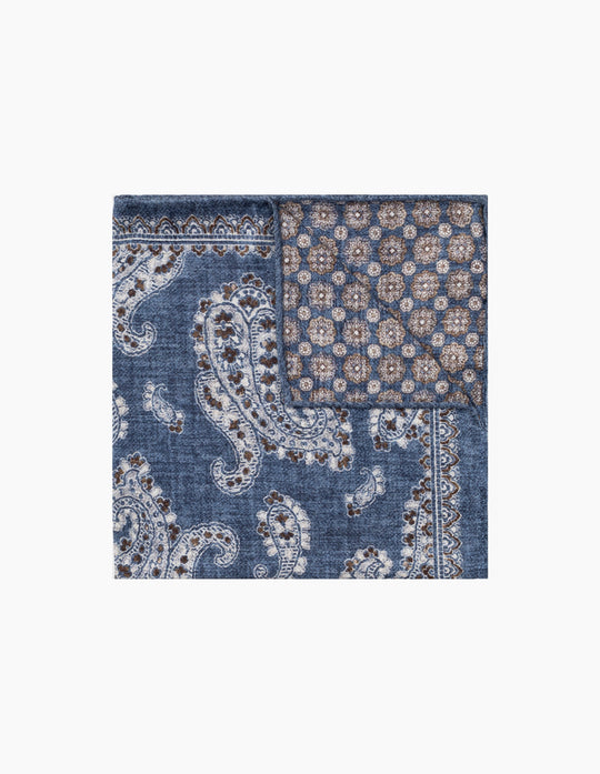 Blue & Brown Paisley Reversible Italian Pocket Square