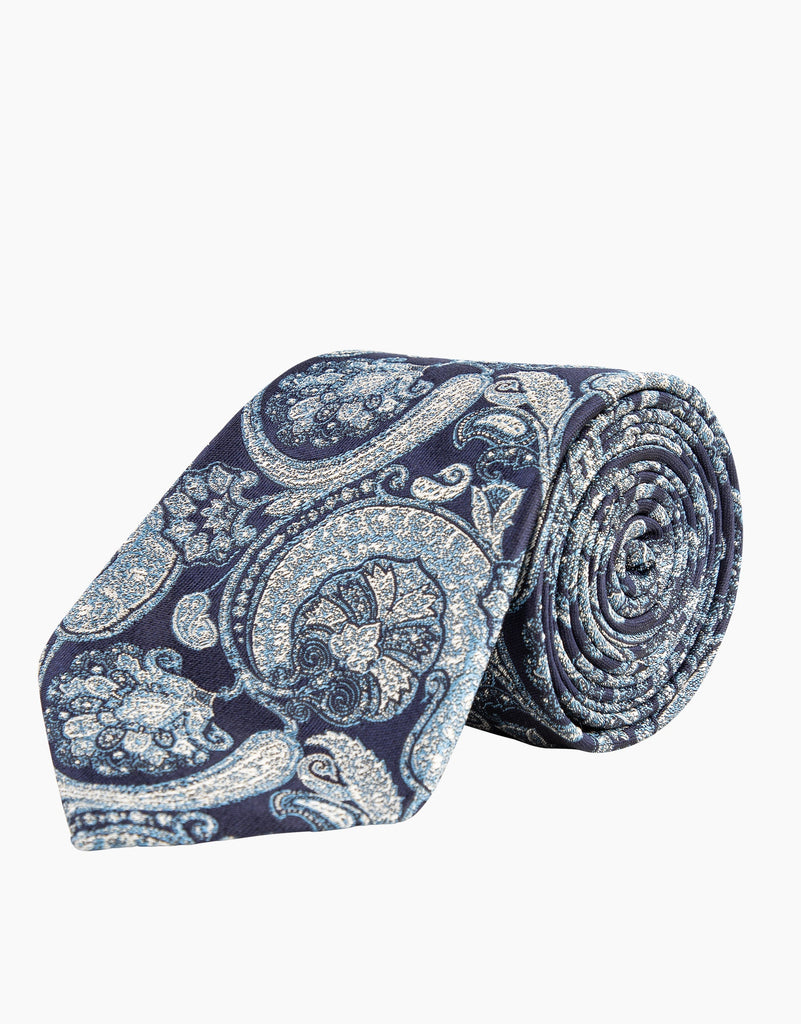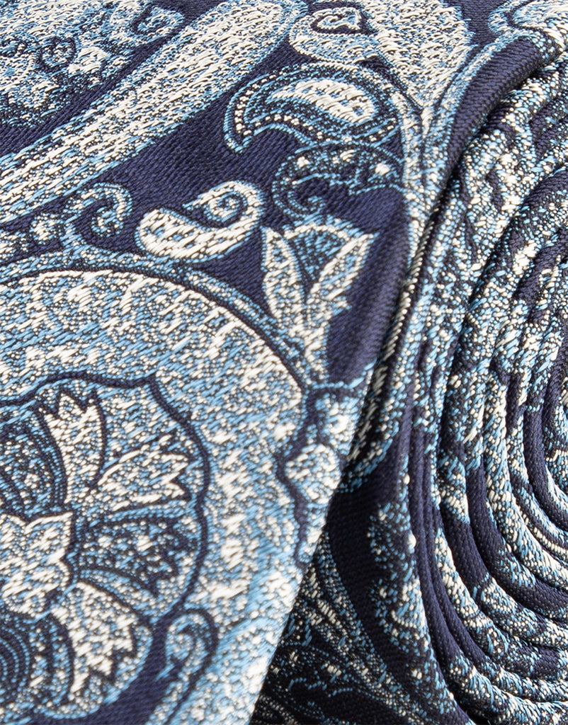Blue & White Large Paisley Jacquard Silk Tie