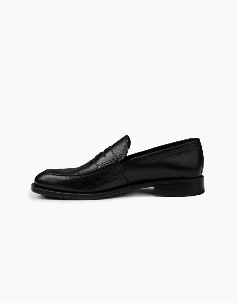 - Classic penny loafer features: penny strap, beef roll edges, apron toe