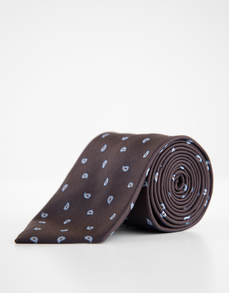 Not all ties are created equal. This one—cut in a classic 8cm width and woven from 100% silk—proves the point. The micro paisley pattern in brown and blue adds just the right amount of character to navy tailoring or a crisp white shirt. Confident. Understated. Endlessly wearable.