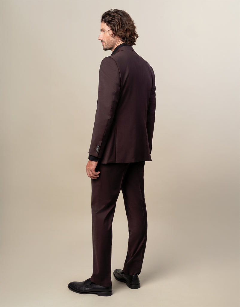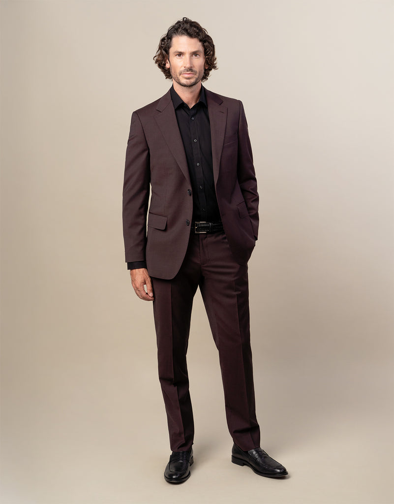 Step up your fashion game with this sleek men’s suit, designed for the modern man. Made from Super 100’s fabric with a blend of 98% wool and 2% elastane, it offers both a sharp look and comfy stretch. The burgundy twill fabric is bold and stylish, while the single-breasted jacket features eye-catching pic-stitching on the lapels and pockets. The flat-front trousers add a clean, contemporary vibe. Mix and match your jacket and pants for the perfect fit, with short and tall size options for a look that’s truly your own.