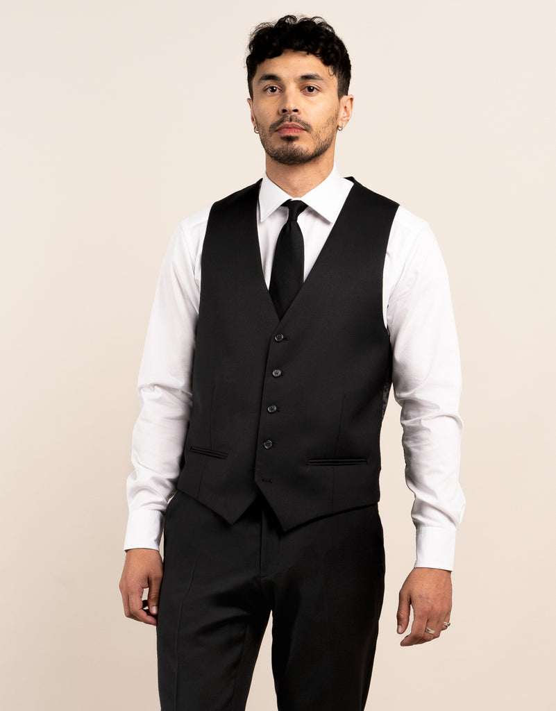 Form a stylish three-piece suit by pairing the jacket and trouser together. The fabric is a blend of high-quality merino wool and polyester, providing unbeatable durability, crease resistance, and a lustrous finish.
