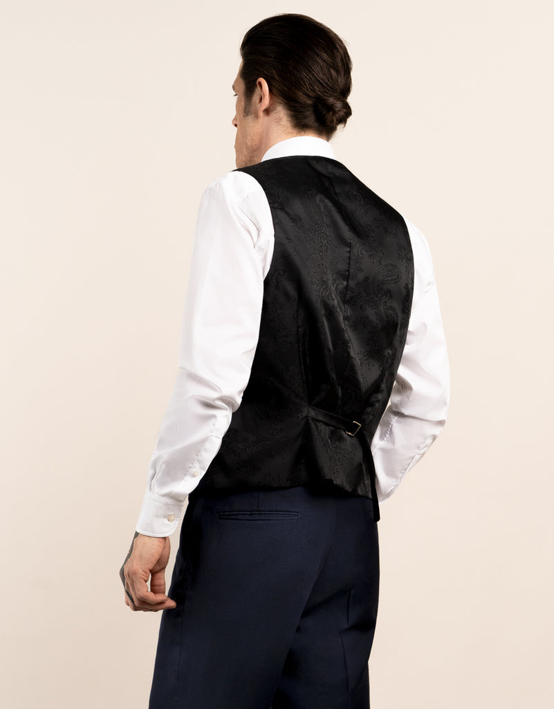 Dress to impress with a sharp and polished appearance thanks to our Curtis Navy Waistcoat. This versatile piece combines perfectly with our Taylor Navy Suit Jacket and Lautner Trousers to create a timeless three-piece suit that is effortlessly stylish. Elevate your fashion game and make a lasting impact.