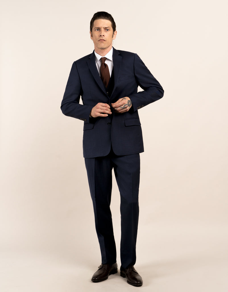 Our most popular fit. A contemporary cut that is slightly wider across the Jacket chest and abdomen and wider in the Trouser leg than the Narrow fit. It creates a flattering silhouette on men of all shapes and sizes.