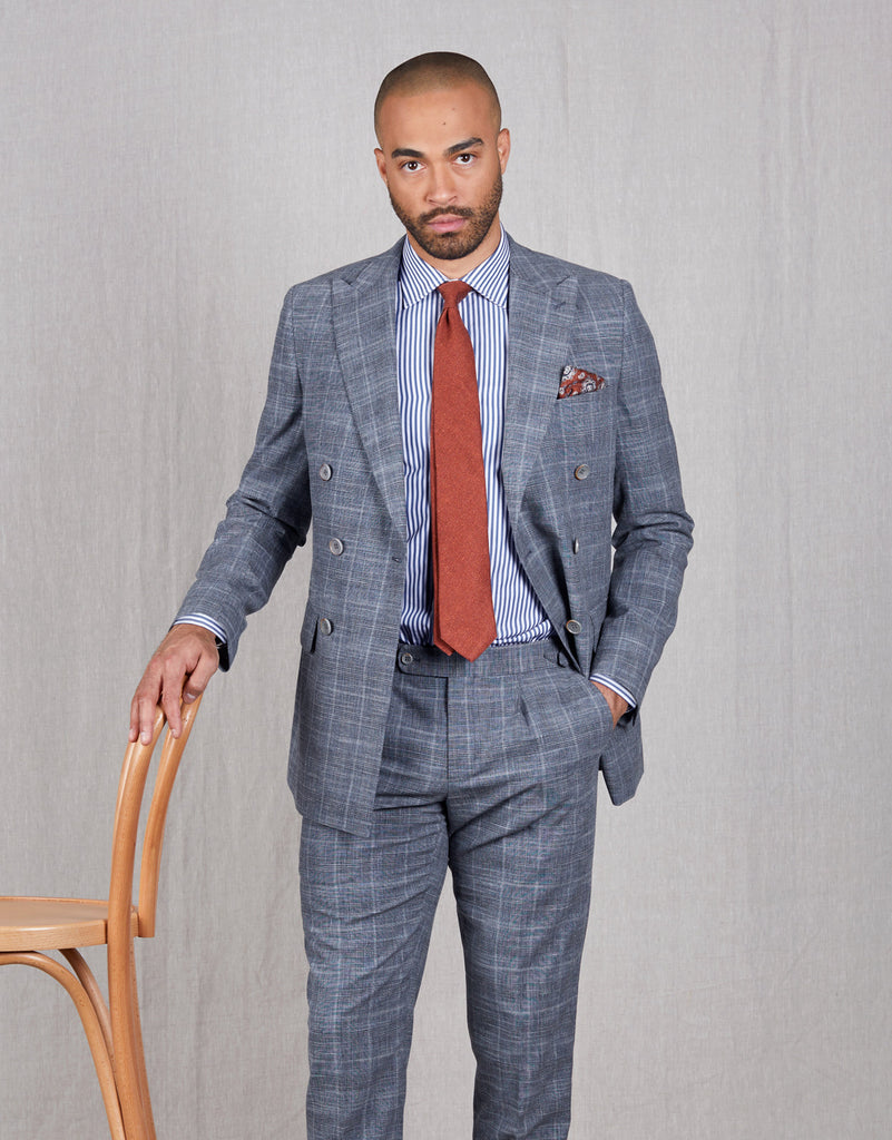 Evans is slim-fit and designed with both comfort and style in mind. The single pleat provides a little more room across the thigh, while the elastic adjustable waistband is incredibly comfortable to wear. Crafted from an Italian blend of wool, cotton, linen and a hint of elastane for extra comfort. Shades of blue and beige yarns are woven together to make the check trouser. Match it with the Whetu blazer to make it a suit.