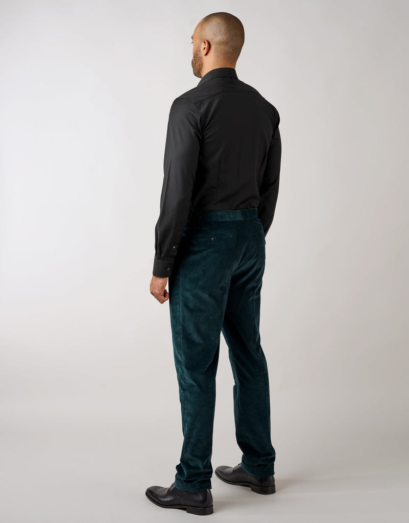 Discover the perfect blend of comfort and style with our Petrol Blue Corduroy Trousers. Made with durable and soft Corduroy material, these trousers feature a single pleat design and convenient side adjusters for a customized fit. Complete your look with the stylish cuffed hem.