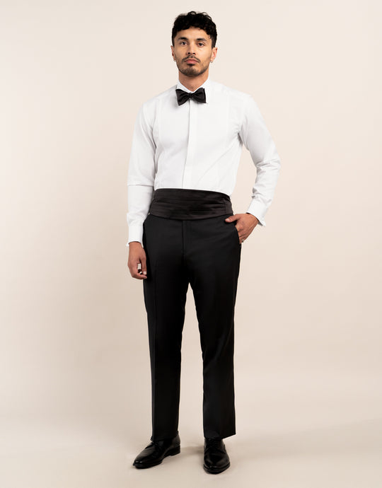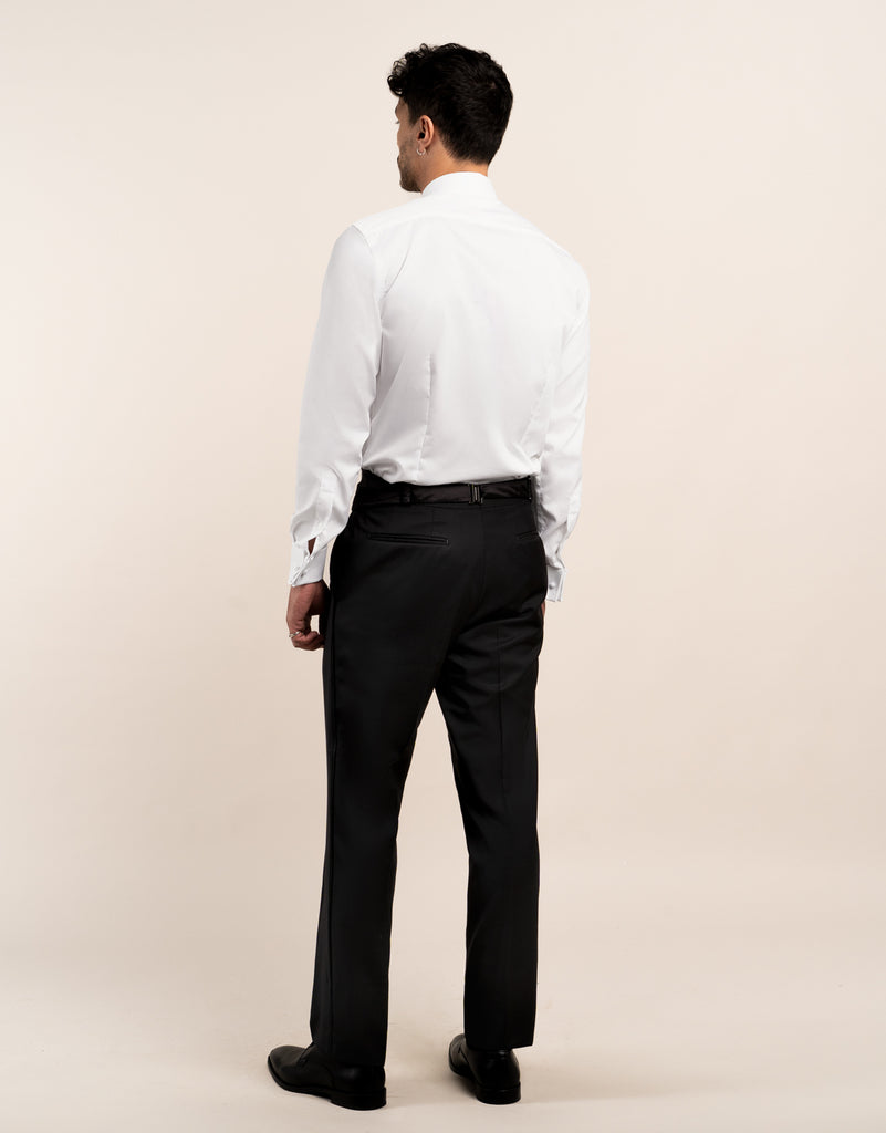 Experience the perfect blend of strength and elegance with our Fairbanks Black Formal Suit Trouser. Our high-quality merino wool and premium polyester blend creates a fabric that is both durable and resistant to creases, while also maintaining a luxurious luster. Plus, the adjustable waistband ensures a comfortable fit for all shapes, making it suitable for any formal occasion or company event. We've got you covered, no matter your shape or level of formality.