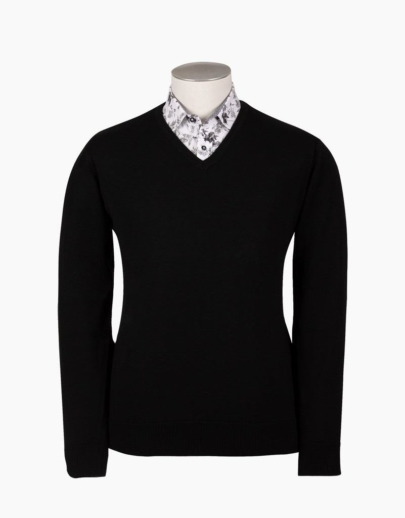 Made from pure merino wool, using two-ply yarns to ensure maximised shape retention and minimised pilling. Our black Fairlie v-neck is warm, comfortable and perfect for layering.