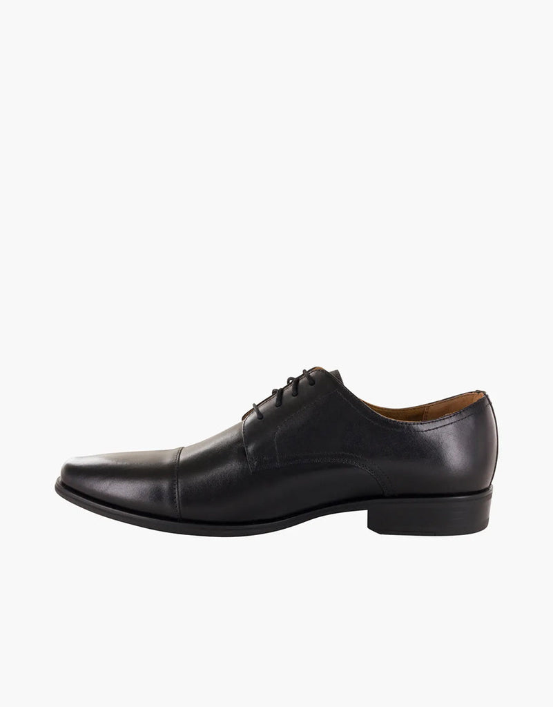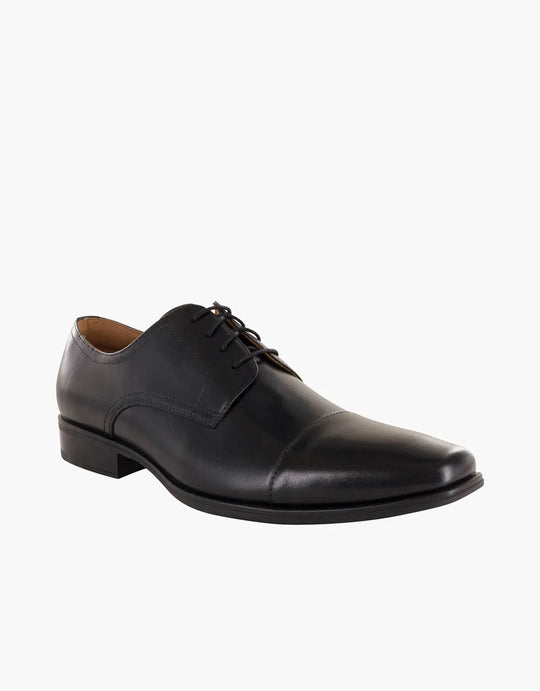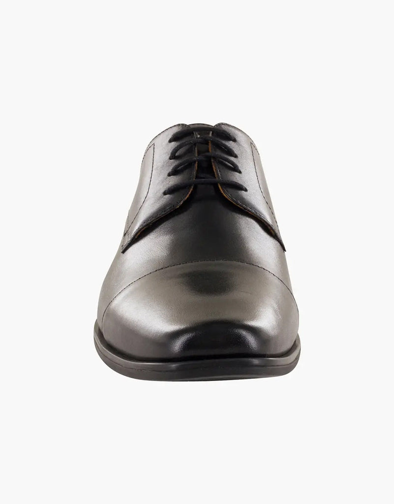 The Florsheim Jackson Cap Toe Derby features a timeless leather silhouette. This versatile dress lace up can be worn with a suit or jeans and features a lightweight flexible rubber sole and breathable suedetech lining make it not only comfortable but perfect to wear to any occasion.