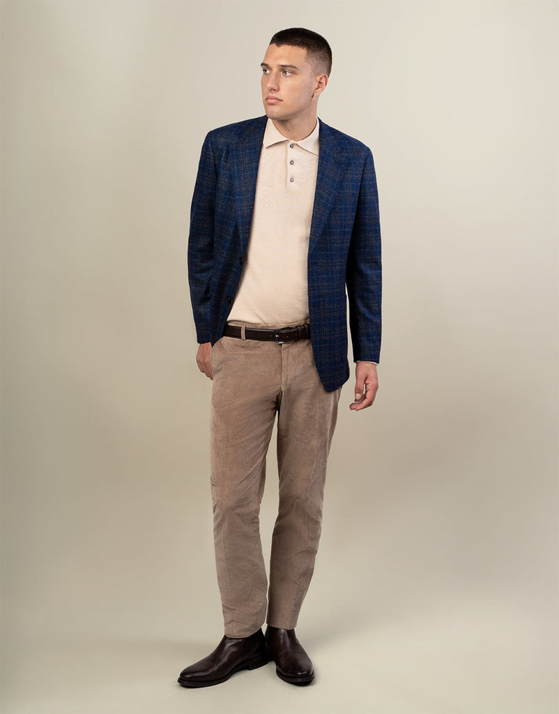 Our fullest fit across the Jacket chest and abdomen and in the Trouser thigh and leg. Neither too slim nor too classic, regular fits perfectly in between.