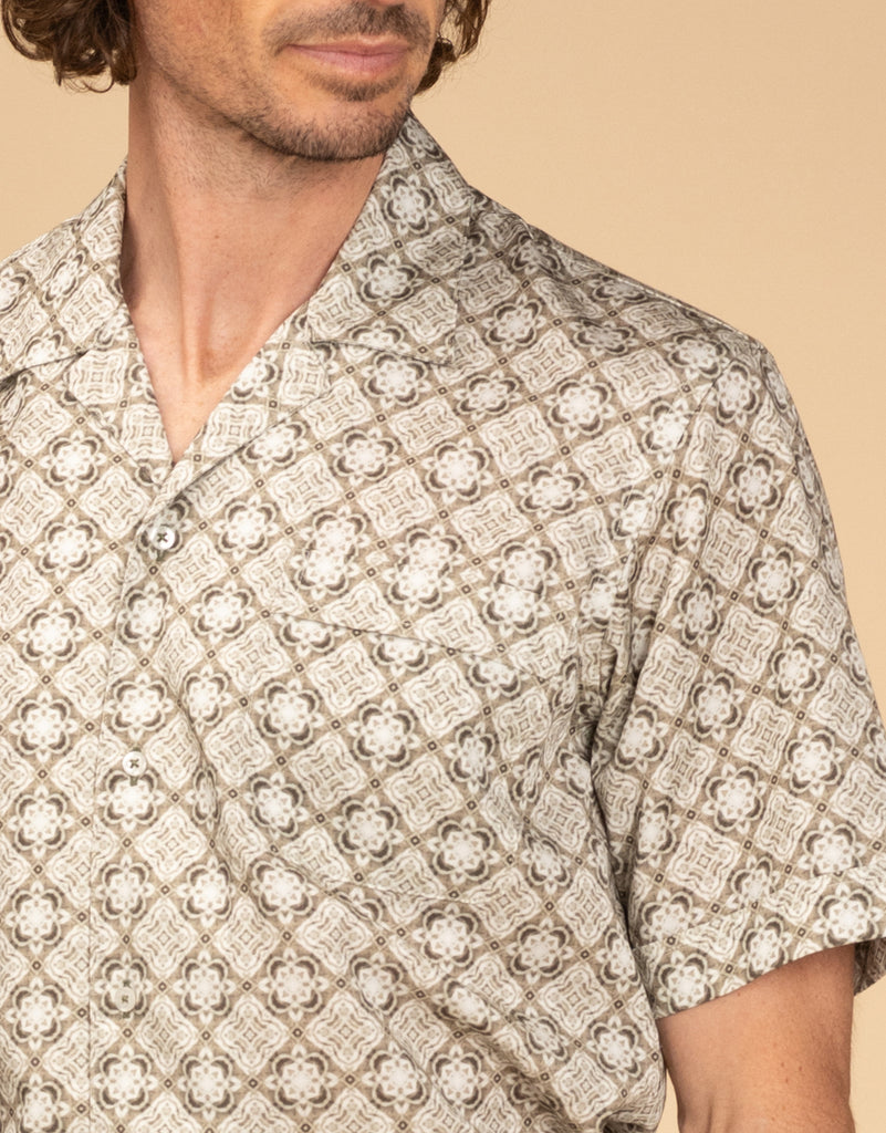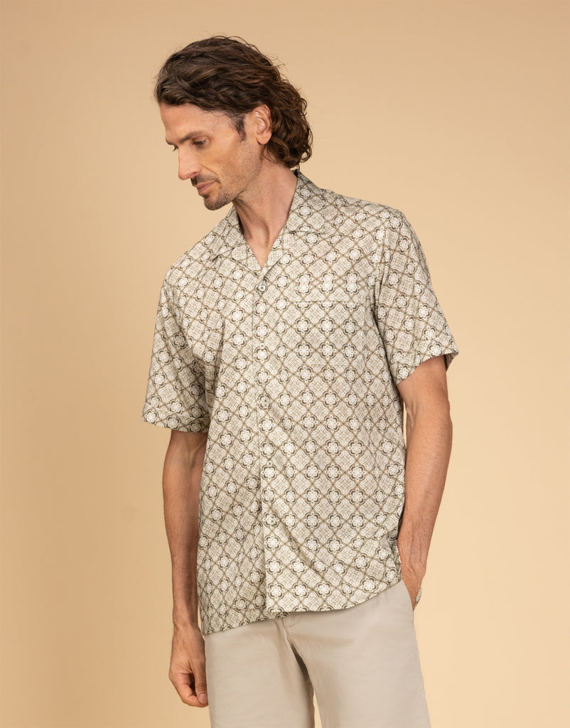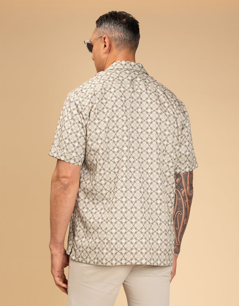 Hahei Olive Green Geometric Short Sleeve Shirt