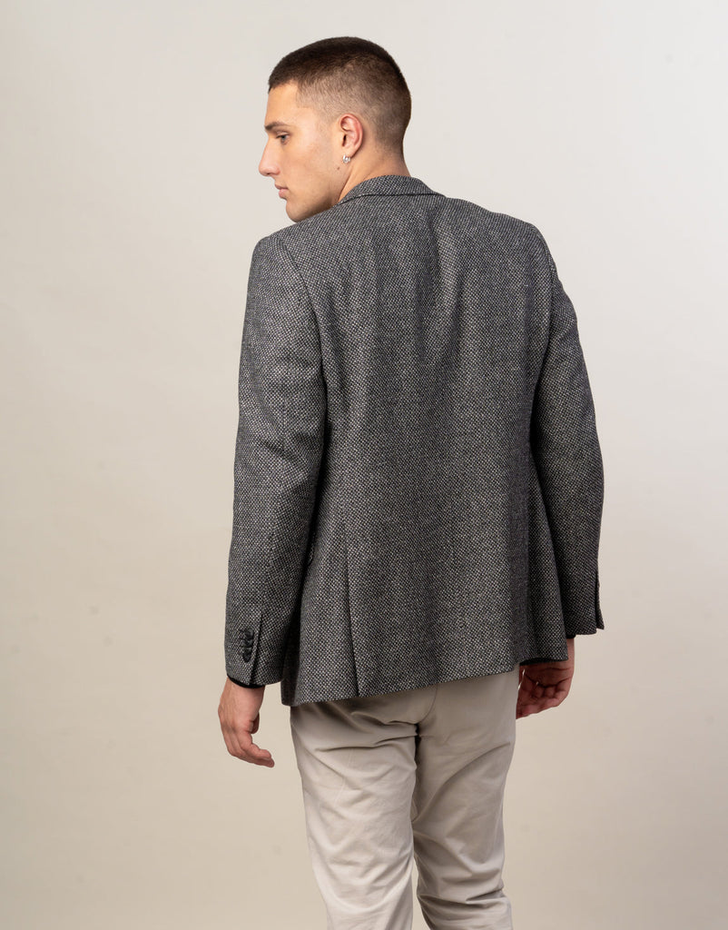Upgrade your style with the Hawker Black & White Birdseye Blazer. Crafted with a luxurious blend of wool, polyester, linen, and polyamide, this blazer combines sophistication with durability. Look sharp and feel comfortable all day in this versatile piece.