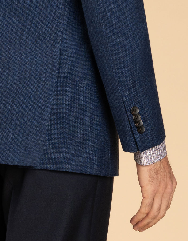 The Hawker Blue Wool Linen Textured Blazer is a stylish blend of wool, linen, and silk that brings together comfort and elegance. Its unique textured fabric offers breathability and a subtle sheen, perfect for making a confident statement whether you're at the office or out on the town. This blazer effortlessly combines timeless design with modern flair.