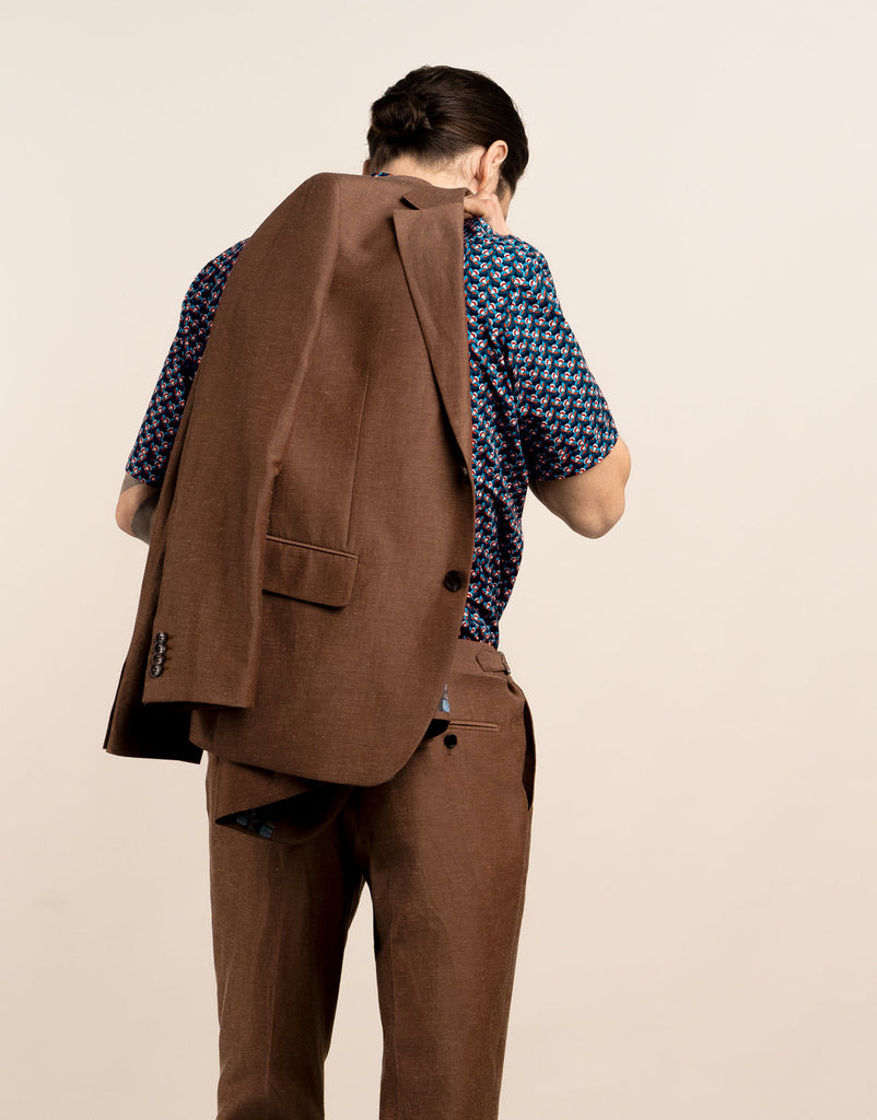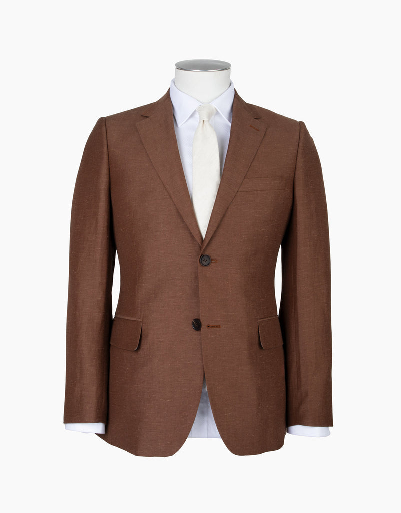 Transform your wardrobe with the Hawker Tobacco Linen Blend Blazer. Made with European fabric including recycled polyester, linen, and wool, this blazer radiates timeless comfort. The bold choice of on-trend tobacco fabric will make a statement and command attention. Create a striking suit by pairing it with the Evans trousers or let it shine as a standout blazer on its own.