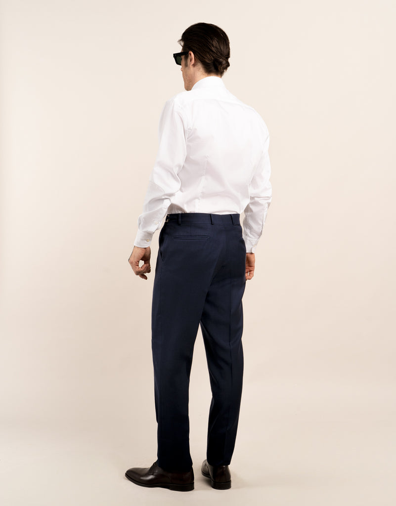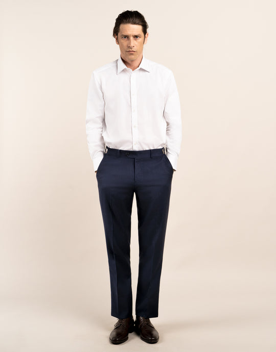 Experience the power of nature's super-fibre with our Merino wool trousers. These trousers are strong, resilient, soft, and have the ability to insulate from temperature changes. Whether you're in a formal situation or just want to be comfortable, our adjustable waistband accommodates all shapes. Elevate your wardrobe with our Lautner Navy Trouser.