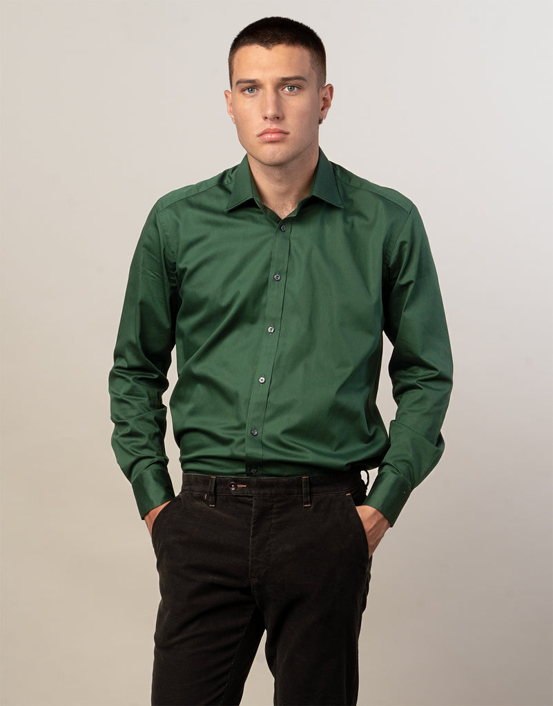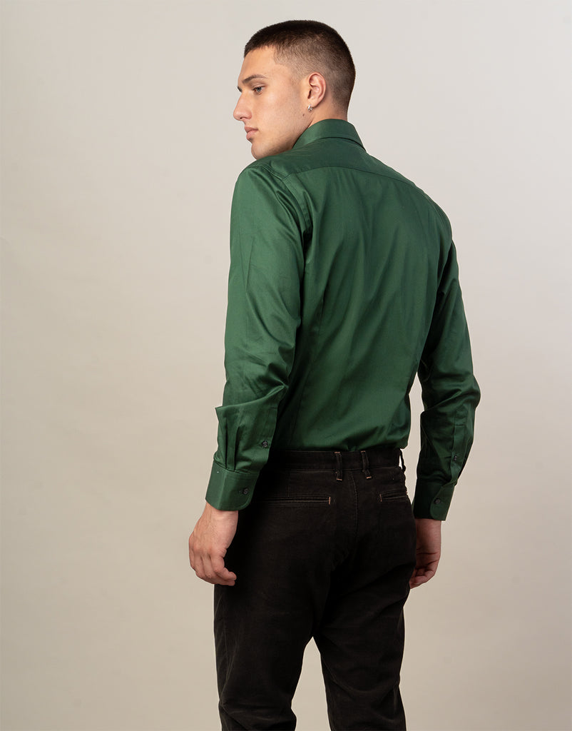 The London Dark Green Sateen Shirt is where sophistication meets versatility. Crafted from 100% cotton, its smooth sateen finish gives it a refined sheen, making it perfect for both smart and casual occasions. Short and Tall sizes are available, ensuring a great fit for everyone. Style it up with tailored trousers and a blazer for a sleek evening look, or keep it effortlessly cool with dark denim and boots. Whether you're dressing for work or a night out, this shirt always delivers.