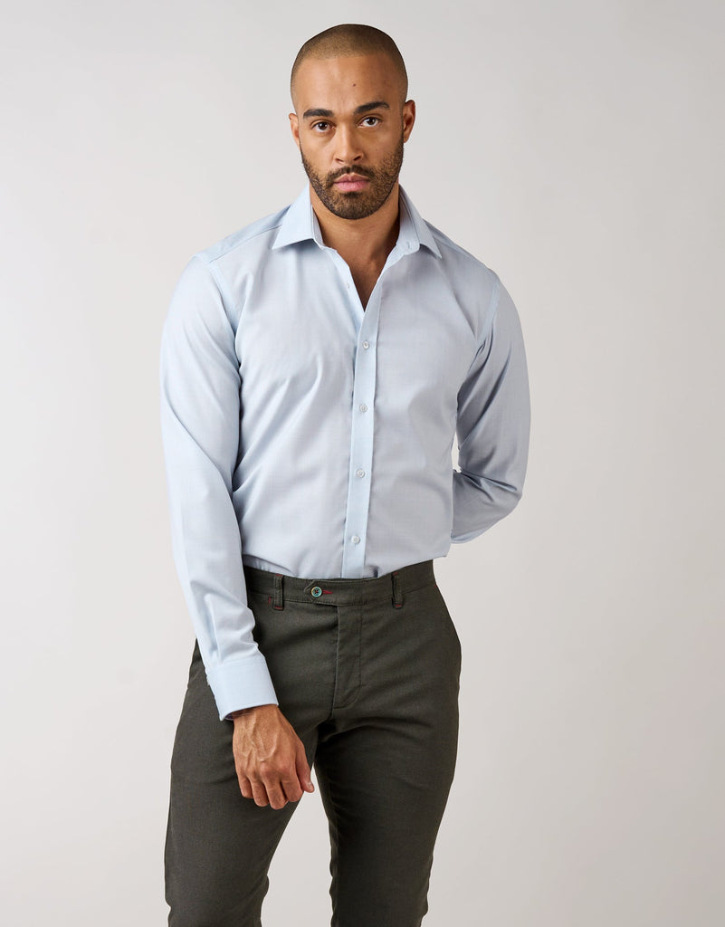 The London Light Blue Merino Shirt is more than just your average shirt. Combining the best of both worlds, it offers the softness and breathability of cotton, while also providing the wrinkle-resistant properties of wool.
