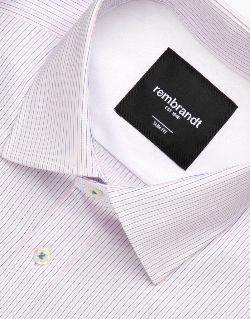 Looking to elevate your office attire? Look no further than this London Pink and Blue Stripe Shirt. Made from high-quality pure cotton, it's both stylish and comfortable, allowing you to stay sharp and confident all day long. The subtle contemporary pink and blue stripes add a touch of modernity to your wardrobe, making it the perfect choice for any modern professional.