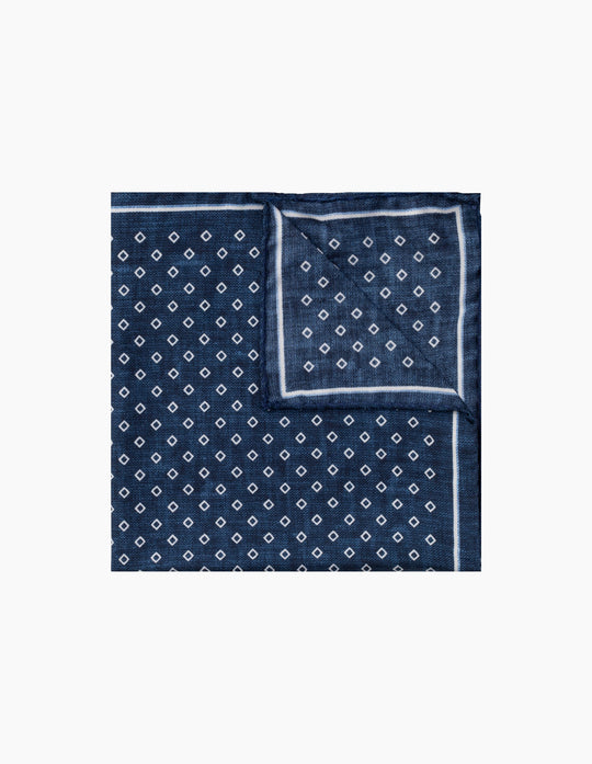 Navy & White Diamond Italian Silk Pocket Square