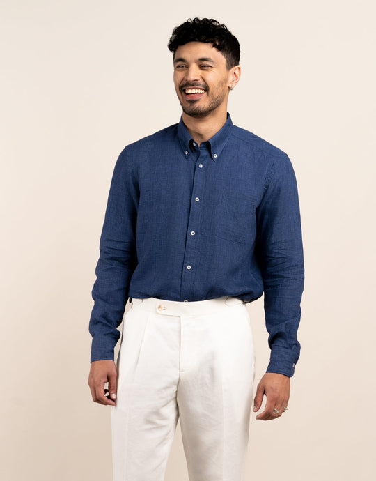 This Ohope Ink Blue Linen Shirt serves as the foundation for any stylish yet relaxed look and easily goes with jeans, chinos, and pants. Crafted from 100% linen to ensure a cool and comfortable wear. Featuring a button-down collar, this shirt with its original fit ensures day-long comfort regardless of the weather.