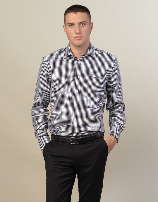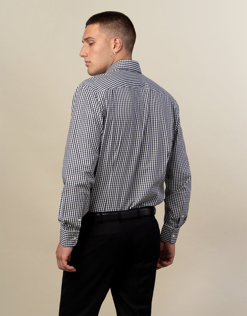 The Sinatra Black & White Check Shirt combines comfort and sharp style, making it a versatile addition to your wardrobe. Constructed of pure cotton, this shirt feels soft and breathable on your skin. The bold black and white check pattern adds just the right amount of flair to your outfit without overpowering it. Designed with a tailored fit, buttoned cuffs, and a front pocket, it's both functional and stylish. Dress it up with chinos or keep it casual with dark jeans for a polished look that easily transitions from work to weekend.