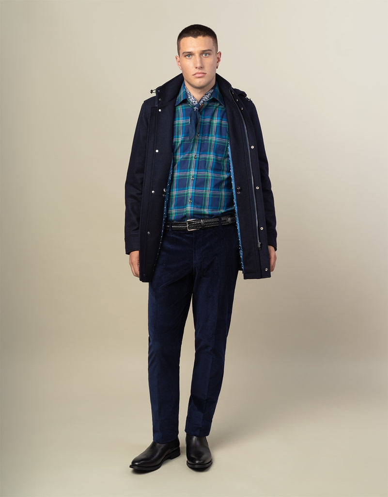 Our fullest fit across the Jacket chest and abdomen and in the Trouser thigh and leg. Neither too slim nor too classic, regular fits perfectly in between.