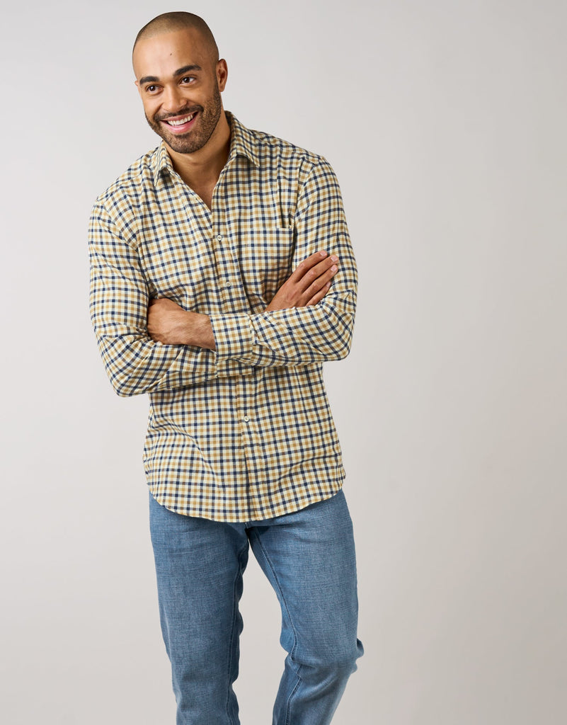 Sinatra Camel & Navy Check Flannel Shirt