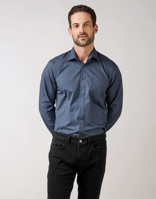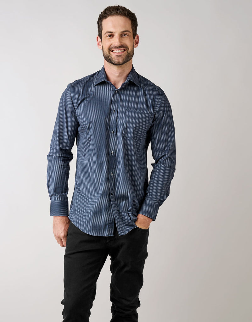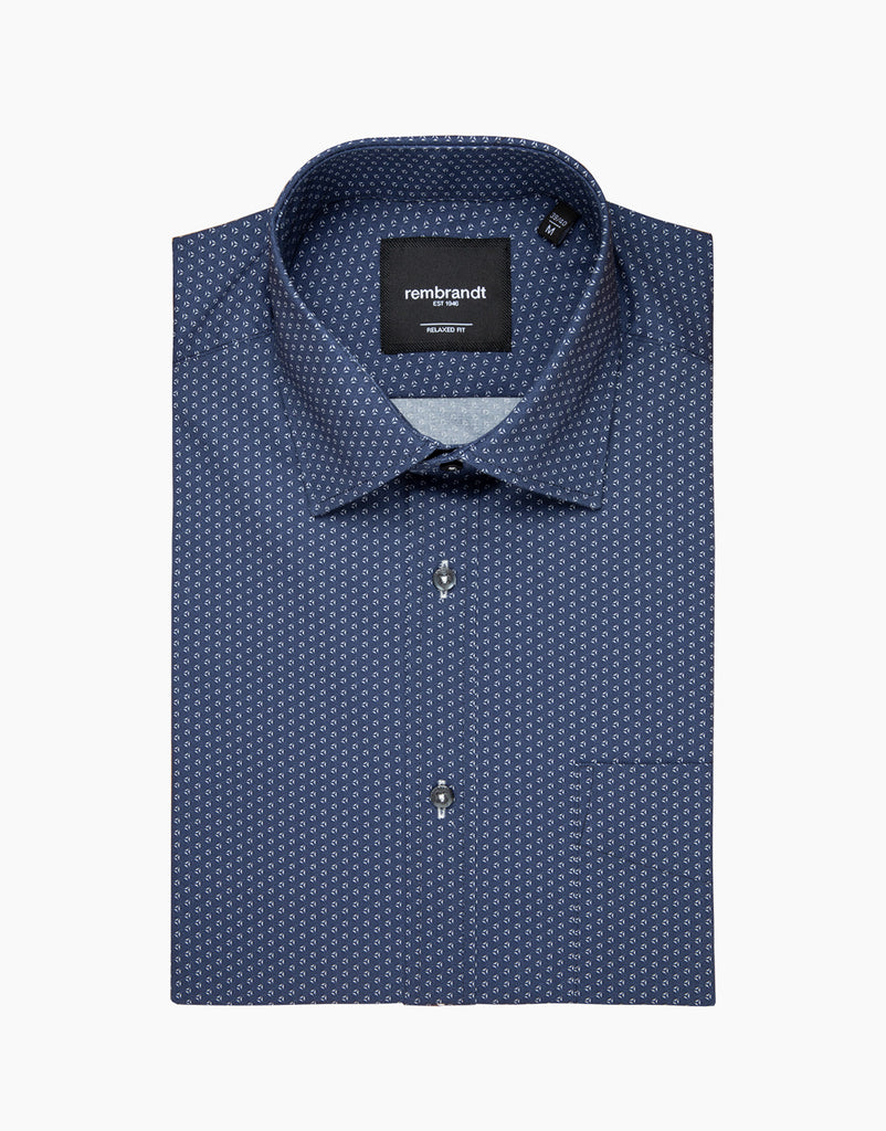 Experience unmatched comfort and effortless style with the Sinatra Dark Blue Micro-design Shirt. Made from 100% cotton, this shirt can keep you comfortable and looking your best all day long. Plus, its versatile dark blue micro-design pattern makes it perfect for any event or occasion.