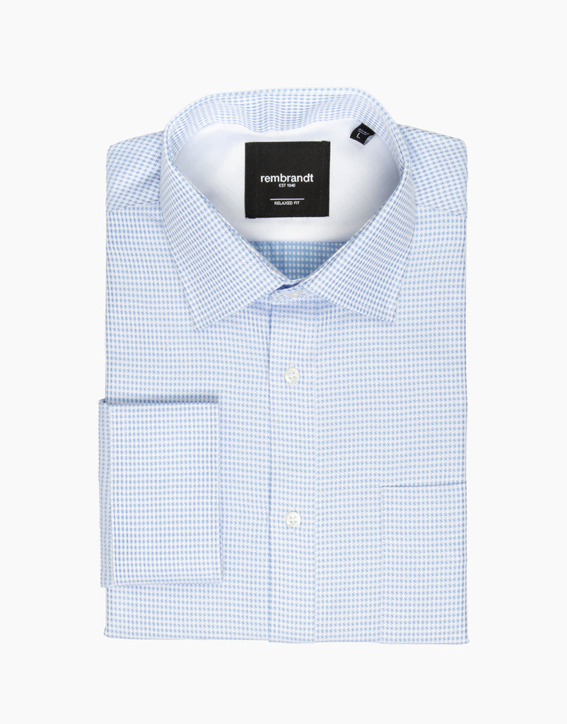 Sinatra is designed for modern professionals seeking the style, fabric and fit of a premium quality shirt that will form the base of their workwear and formal attire. This light blue microdesign dress shirt is cut from a soft cotton fabric that guarantees all-day-long comfort. Other key features include a classic chest pocket, as well as pleats on the back that allow greater ease of movement.