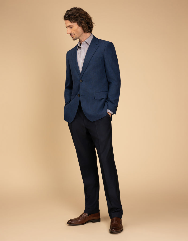 Our most popular fit. A contemporary cut that is slightly wider across the Jacket chest and abdomen and wider in the Trouser leg than the Narrow fit. It creates a flattering silhouette on men of all shapes and sizes.