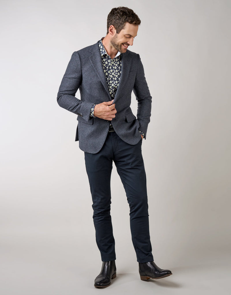 Experience the ultimate in comfort and sophistication with Soho navy chinos. Whether you're dressing up for a special event or keeping it casual, these timeless chinos will effortlessly elevate your style. Made from stretch-cotton twill with a subtle brushed finish, these chinos are the perfect addition to any wardrobe. So wherever life takes you, look and feel your best with Soho navy chinos.
