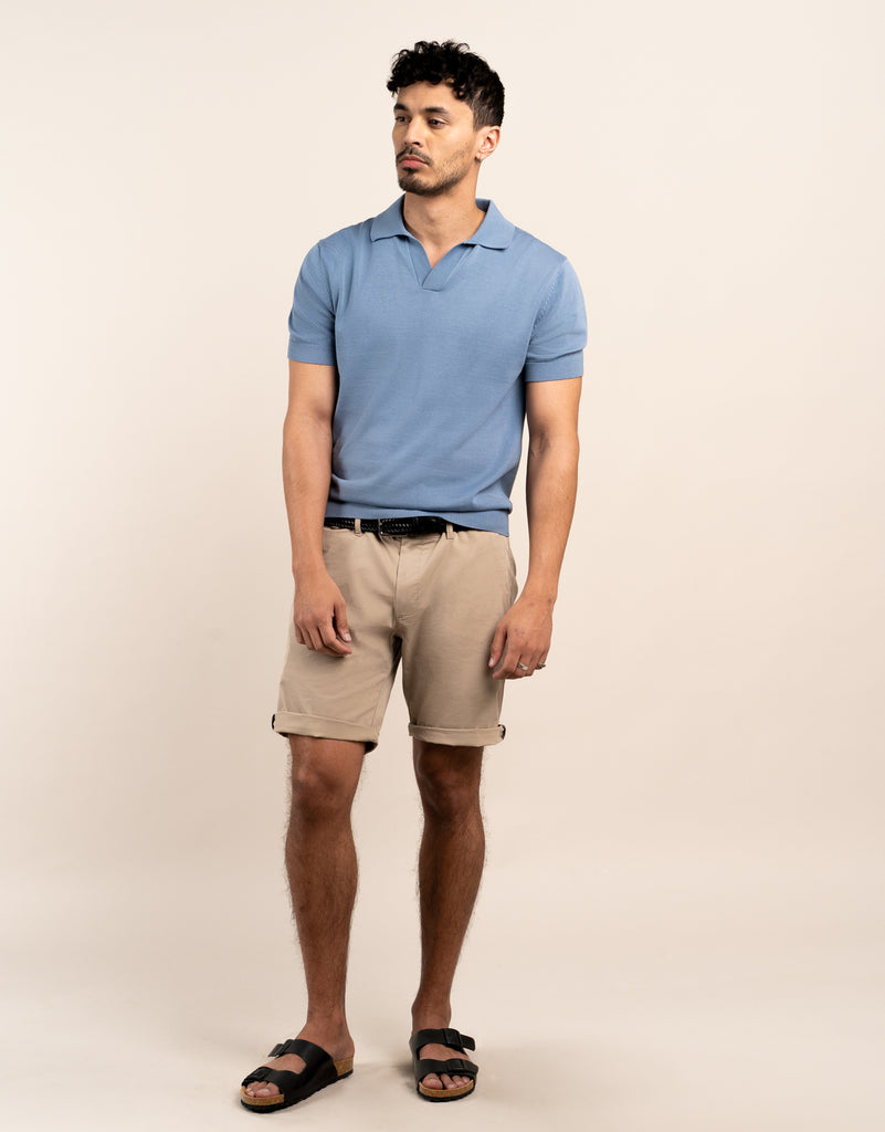 Experience ultimate comfort and style on your weekends and vacations with our Sumner Beige Shorts. Crafted from stretch cotton and featuring stylish contrast detailing, these shorts offer a classic straight-leg design and breathability. The versatile beige hue effortlessly pairs with other neutral colors, making it a perfect match for any casual summer look - just pair it with a polo or linen shirt for an effortlessly chic outfit.