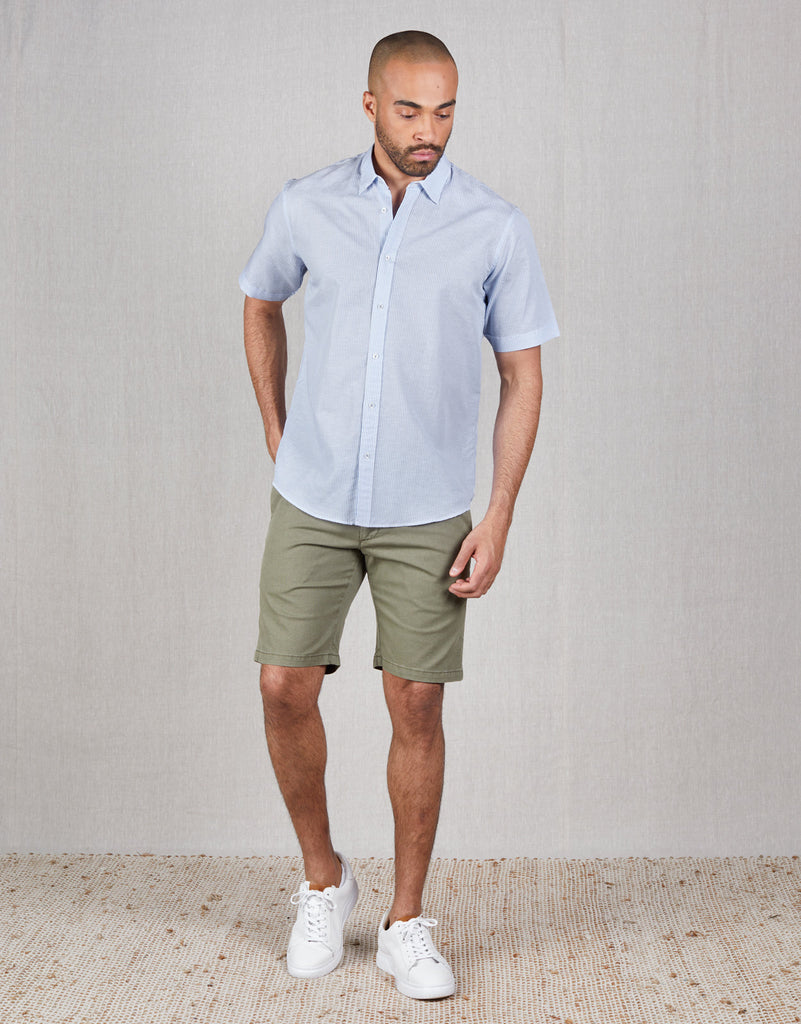 On warm days, reach for these classic chino shorts. Crafted to perfection, they’re smart and breathable, woven from a supremely soft stretch cotton fabric and cut in an uncomplicated straight-leg profile. The on-trend khaki shade of this pair seamlessly blends with a range of other neutral colours; team them with a polo or linen shirt for a laid-back summer look.