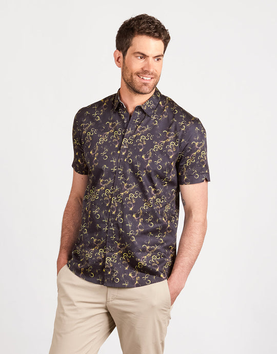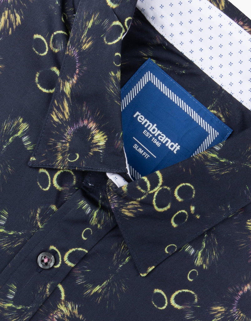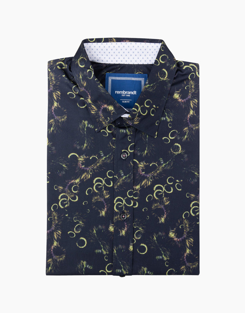 With an oversized fireworks design, this slim fit short sleeve shirt is ready to celebrate summer. Less casual than a tee or polo whilst remaining light and cool to wear thanks to the pure cotton printed fabric.