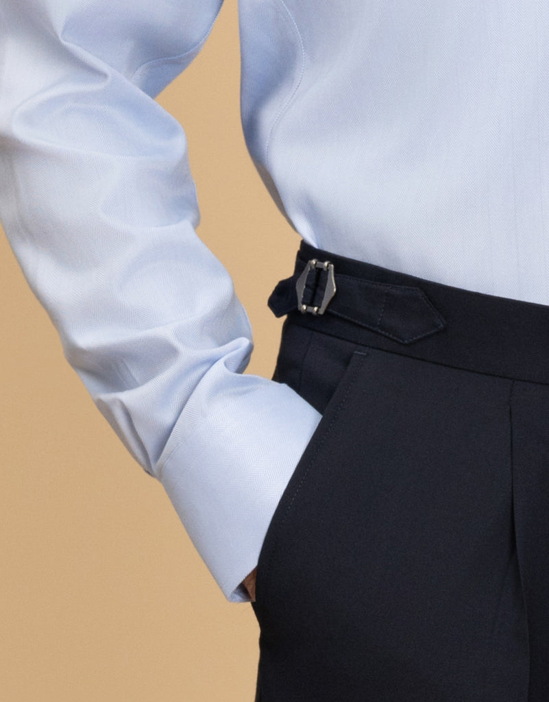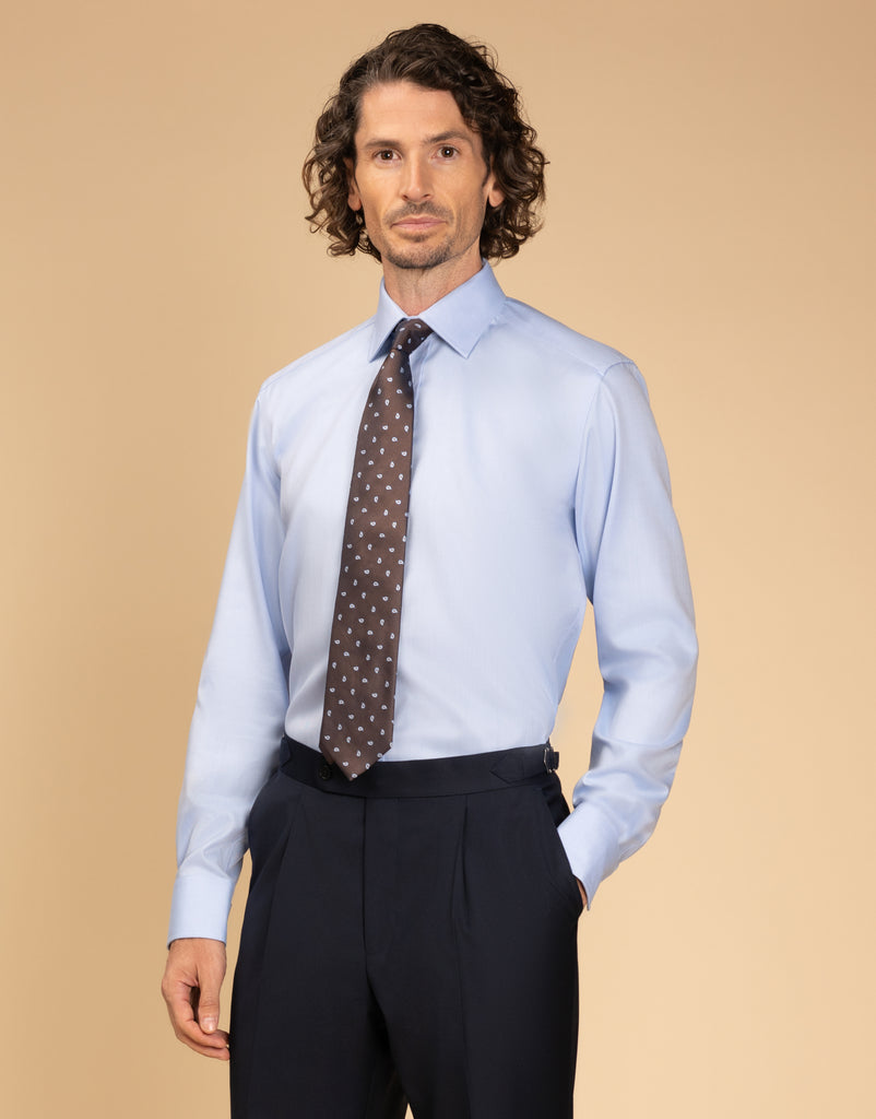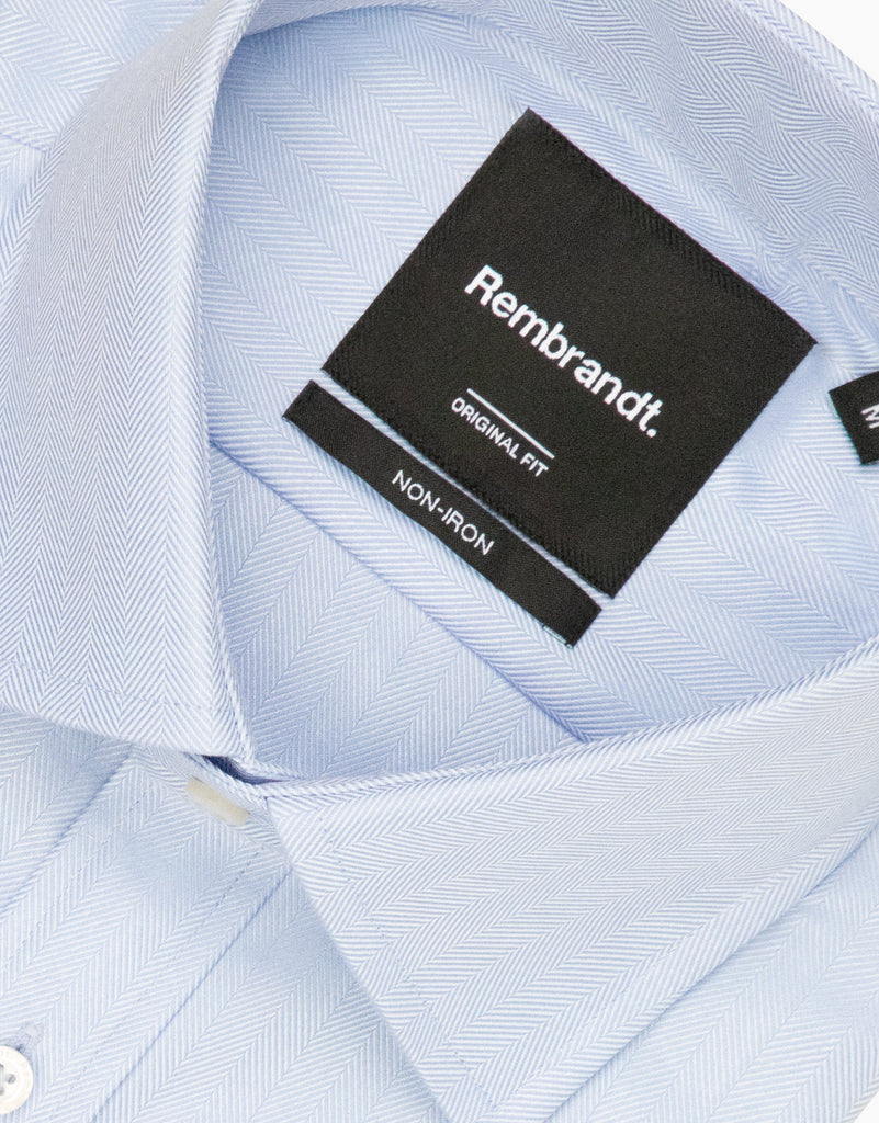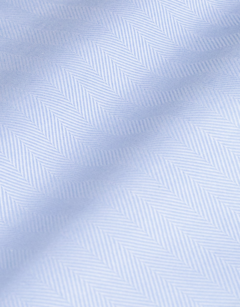 Meet your new everyday essential for work. The York Light Blue Herringbone Non-Iron Shirt is made from 100% cotton with a stylish herringbone pattern, blending the timeless look of a crisp dress shirt with the convenience of a non-iron finish. Thanks to its wrinkle-resistant design, you can wear it all day without worrying about creases.