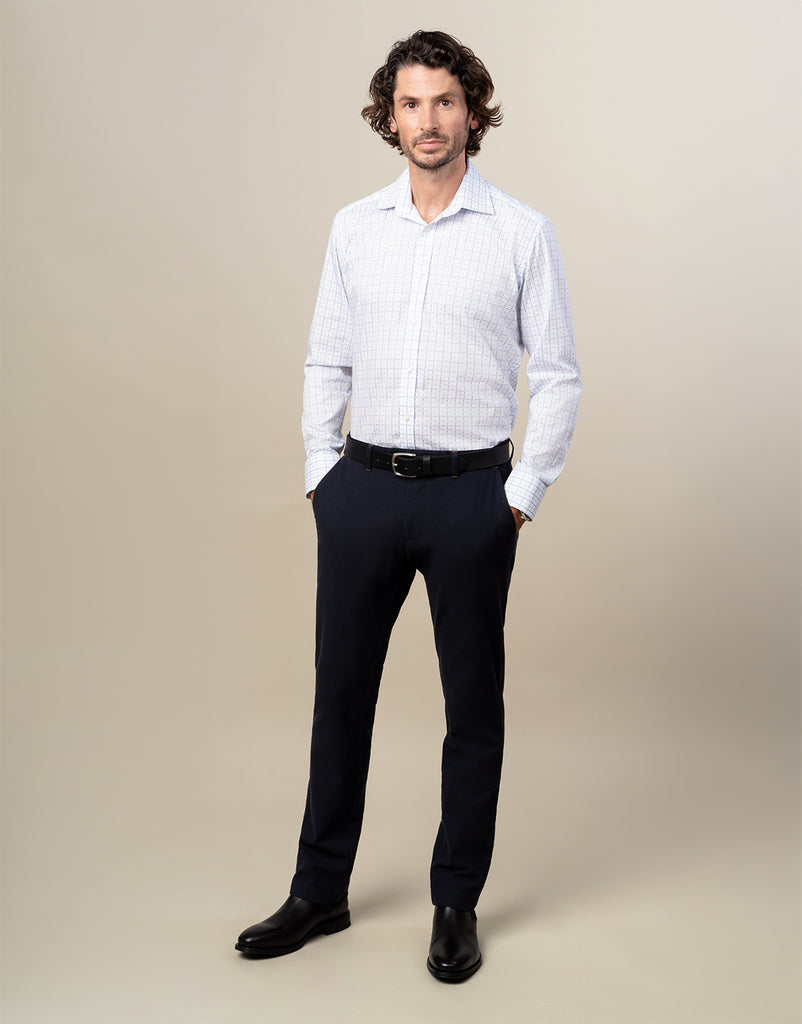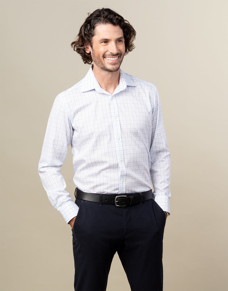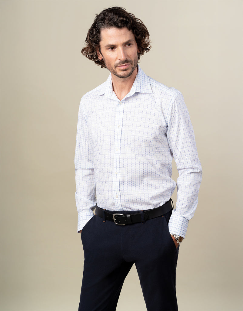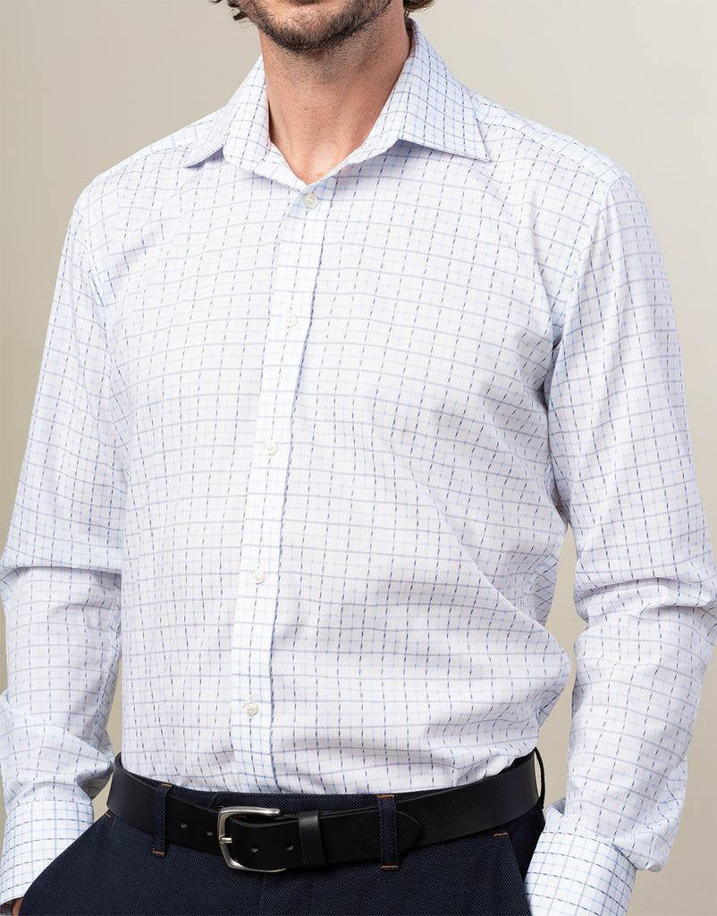 York White & Blue Check Non-Iron Shirt