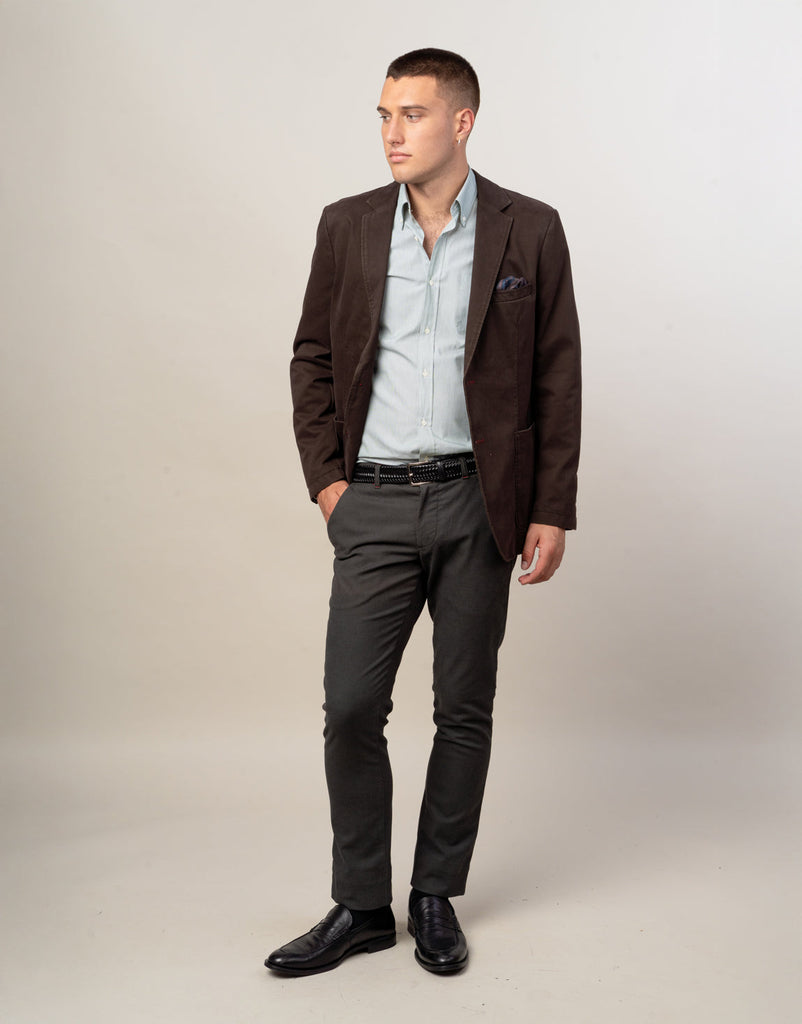 Our fullest fit across the Jacket chest and abdomen and in the Trouser thigh and leg. Neither too slim nor too classic, regular fits perfectly in between.